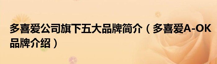大家好,小源来为大家解答以上问题。多喜爱公司旗下五大品牌简介,多喜爱A-OK品牌介绍很多人还不知道,现在让我们一起来看看吧!