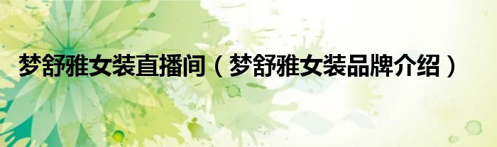 梦舒雅女装直播间(梦舒雅女装品牌介绍)