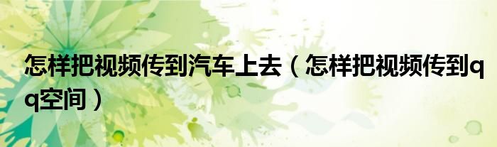 怎样把视频传到汽车上去,怎样把视频传到qq空间很多人还不知道,乐乐来为大家解答以上问题,现在让我们一起来看看吧!