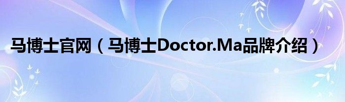 大家好,小源来为大家解答以上问题。马博士官网,马博士Doctor.Ma品牌介绍很多人还不知道,现在让我们一起来看看吧!