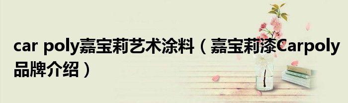 大家好,小源来为大家解答以上问题。car poly嘉宝莉艺术涂料,嘉宝莉漆Carpoly品牌介绍很多人还不知道,现在让我们一起来看看吧!