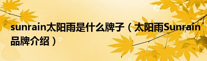 大家好,小源来为大家解答以上问题。sunrain太阳雨是什么牌子,太阳雨Sunrain品牌介绍很多人还不知道,现在让我们一起来看看吧!