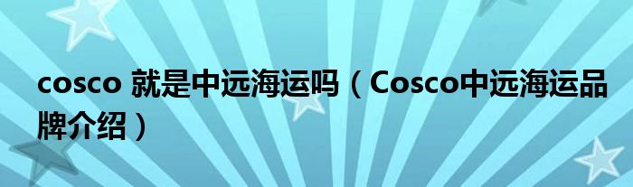大家好,小源来为大家解答以上问题。cosco 就是中远海运吗,Cosco中远海运品牌介绍很多人还不知道,现在让我们一起来看看吧!