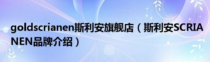 大家好,小源来为大家解答以上问题。goldscrianen斯利安旗舰店,斯利安SCRIANEN品牌介绍很多人还不知道,现在让我们一起来看看吧!