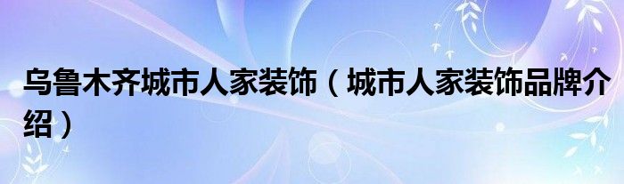 大家好,小源来为大家解答以上问题。乌鲁木齐城市人家装饰,城市人家装饰品牌介绍很多人还不知道,现在让我们一起来看看吧!