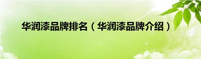 华润漆品牌排名(华润漆品牌介绍)