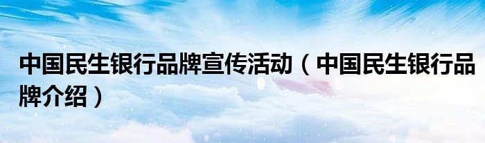 中国民生银行品牌宣传活动(中国民生银行品牌介绍)