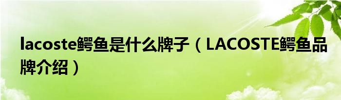 lacoste鳄鱼是什么牌子(LACOSTE鳄鱼品牌介绍)