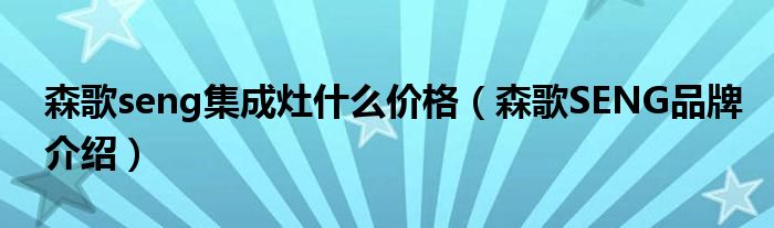 大家好,小源来为大家解答以上问题。森歌seng集成灶什么价格,森歌SENG品牌介绍很多人还不知道,现在让我们一起来看看吧!