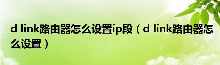大家好,雨雨来为大家解答以上问题,d link路由器怎么设置ip段,d link路由器怎么设置很多人还不知道,现在让我们一起来看看吧!
