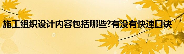 关于施工组织设计内容包括哪些?有没有快速口诀这个很多人还不知道,今天菲菲来为大家解答以上的问题,现在让我们一起来看看吧!