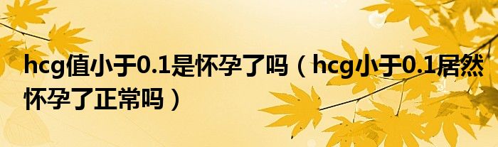 1、发现血液中HCG低于0.1mIU/ml肯定是不正常的,但是怀孕了,因为如果怀孕了,HCG必须大于5mIU/ml才能确定怀孕了。