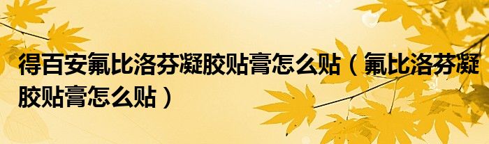 大家好,linda来为大家解答以上的问题。得百安氟比洛芬凝胶贴膏怎么贴,氟比洛芬凝胶贴膏怎么贴很多人还不知道,现在让我们一起来看看吧!