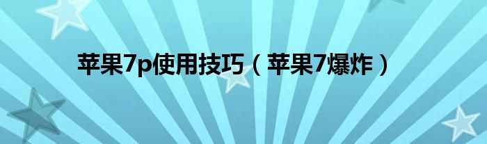 大家好,雨雨来为大家解答以上问题,苹果7p使用技巧,苹果7爆炸很多人还不知道,现在让我们一起来看看吧!