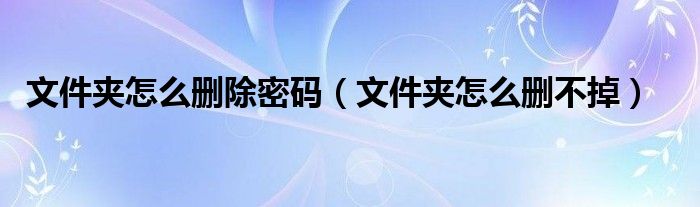 大家好,雨雨来为大家解答以上问题,文件夹怎么删除密码,文件夹怎么删不掉很多人还不知道,现在让我们一起来看看吧!
