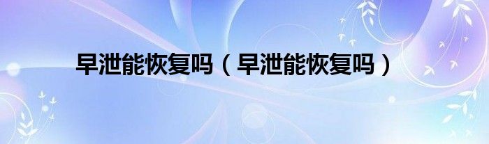 1、大多数早泄是可以恢复的。