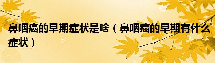 大家好,linda来为大家解答以上的问题。鼻咽癌的早期症状是啥,鼻咽癌的早期有什么症状很多人还不知道,现在让我们一起来看看吧!