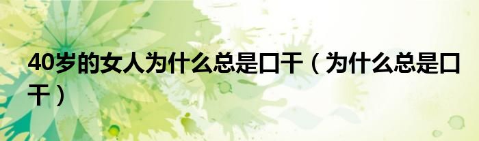 大家好,linda来为大家解答以上的问题。40岁的女人为什么总是口干,为什么总是口干很多人还不知道,现在让我们一起来看看吧!