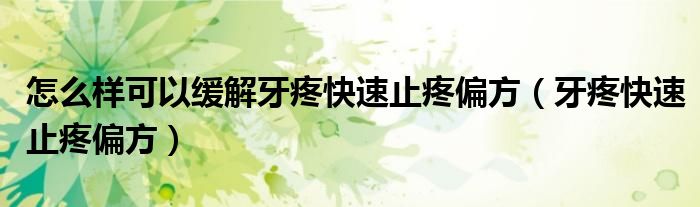 大家好,linda来为大家解答以上的问题。怎么样可以缓解牙疼快速止疼偏方,牙疼快速止疼偏方很多人还不知道,现在让我们一起来看看吧!