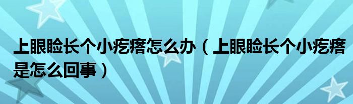 大家好,linda来为大家解答以上的问题。上眼睑长个小疙瘩怎么办,上眼睑长个小疙瘩是怎么回事很多人还不知道,现在让我们一起来看看吧!