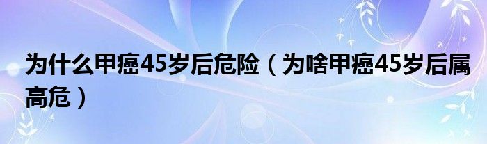 大家好,linda来为大家解答以上的问题。为什么甲癌45岁后危险,为啥甲癌45岁后属高危很多人还不知道,现在让我们一起来看看吧!