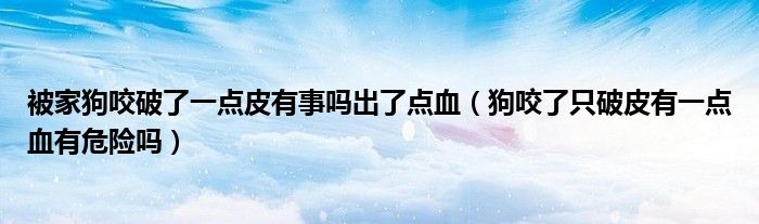 大家好,linda来为大家解答以上的问题。被家狗咬破了一点皮有事吗出了点血,狗咬了只破皮有一点血有危险吗很多人还不知道,现在让我们一起来看看吧!