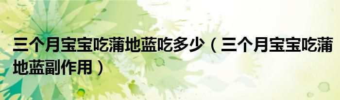大家好,linda来为大家解答以上的问题。三个月宝宝吃蒲地蓝吃多少,三个月宝宝吃蒲地蓝副作用很多人还不知道,现在让我们一起来看看吧!