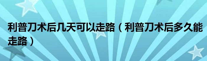 大家好,linda来为大家解答以上的问题。利普刀术后几天可以走路,利普刀术后多久能走路很多人还不知道,现在让我们一起来看看吧!