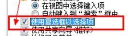 2、在弹出来的“文件夹选项”界面中,切换到“查看”页面,然后在高级设置框中找到并勾选“使用复选框以选择项”,然后点击确定按钮保存退出;