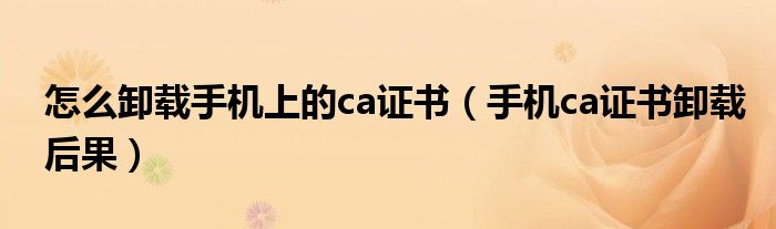 怎么卸载手机上的ca证书(手机ca证书卸载后果)