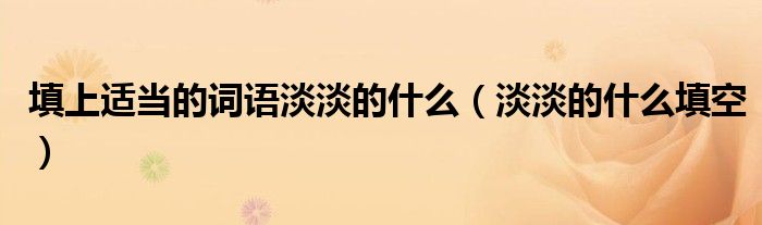 大家好,小晋来为大家解答以下问题,关于填上适当的词语淡淡的什么,淡淡的什么填空很多人还不知道,今天让我们一起来看看吧!