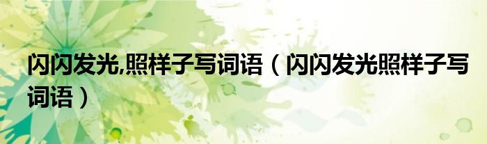 大家好,小晋来为大家解答以下问题,关于闪闪发光,照样子写词语,闪闪发光照样子写词语很多人还不知道,今天让我们一起来看看吧!