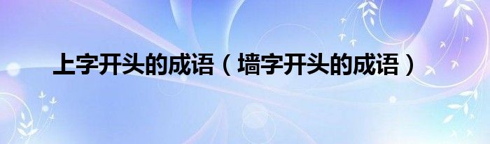 大家好,小晋来为大家解答以下问题,关于上字开头的成语,墙字开头的成语很多人还不知道,今天让我们一起来看看吧!