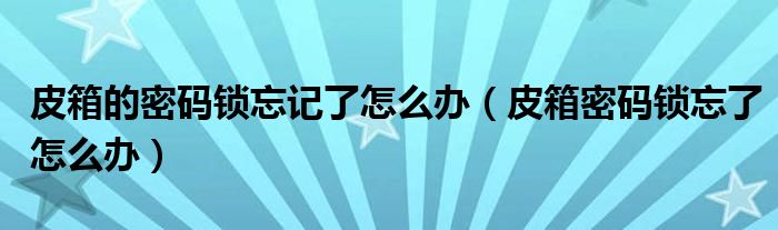 大家好,小晋来为大家解答以下问题,关于皮箱的密码锁忘记了怎么办,皮箱密码锁忘了怎么办很多人还不知道,今天让我们一起来看看吧!