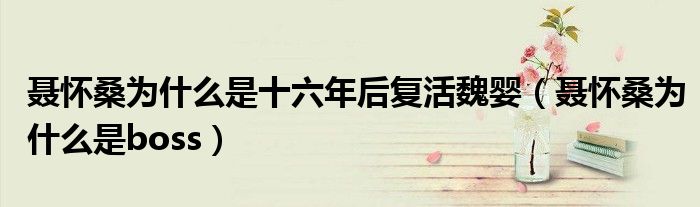 大家好,小晋来为大家解答以下问题,关于聂怀桑为什么是十六年后复活魏婴,聂怀桑为什么是boss很多人还不知道,今天让我们一起来看看吧!