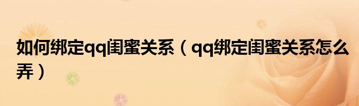 大家好,小晋来为大家解答以下问题,关于如何绑定qq闺蜜关系,qq绑定闺蜜关系怎么弄很多人还不知道,今天让我们一起来看看吧!