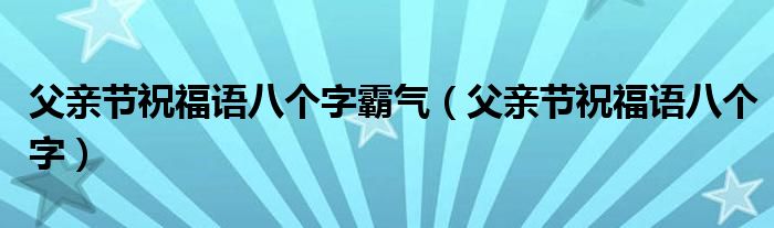 大家好,小晋来为大家解答以下问题,关于父亲节祝福语八个字霸气,父亲节祝福语八个字很多人还不知道,今天让我们一起来看看吧!