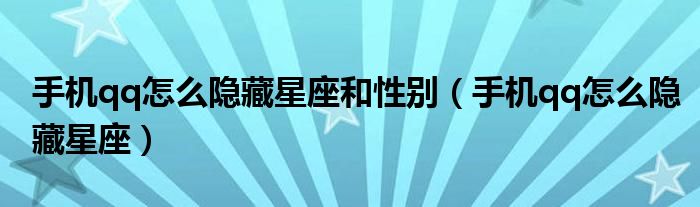 大家好,小晋来为大家解答以下问题,关于手机qq怎么隐藏星座和性别,手机qq怎么隐藏星座很多人还不知道,今天让我们一起来看看吧!