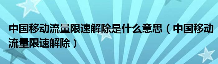 大家好,小晋来为大家解答以下问题,关于中国移动流量限速解除是什么意思,中国移动流量限速解除很多人还不知道,今天让我们一起来看看吧!