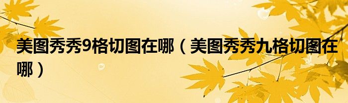 大家好,小晋来为大家解答以下问题,关于美图秀秀9格切图在哪,美图秀秀九格切图在哪很多人还不知道,今天让我们一起来看看吧!