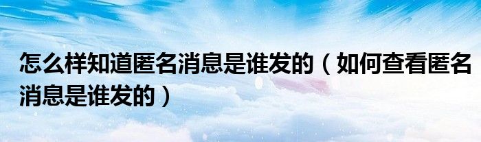 大家好,小晋来为大家解答以下问题,关于怎么样知道匿名消息是谁发的,如何查看匿名消息是谁发的很多人还不知道,今天让我们一起来看看吧!