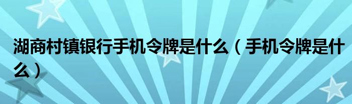 大家好,小晋来为大家解答以下问题,关于湖商村镇银行手机令牌是什么,手机令牌是什么很多人还不知道,今天让我们一起来看看吧!