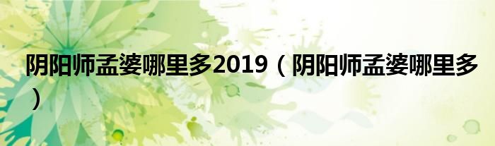 阴阳师孟婆哪里多2019,阴阳师孟婆哪里多很多人还不知道,乐乐来为大家解答以上问题,现在让我们一起来看看吧!