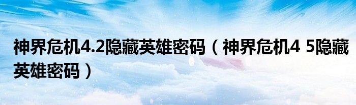 神界危机4.2隐藏英雄密码(神界危机45隐藏英雄密码)