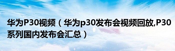 大家好,小常来为大家解答以上问题。华为P30视频,华为p30发布会视频回放,P30系列国内发布会汇总很多人还不知道,现在让我们一起来看看吧!