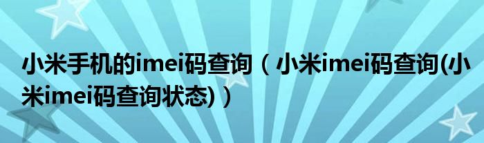大家好,小常来为大家解答以上问题。小米手机的imei码查询,小米imei码查询(小米imei码查询状态)很多人还不知道,现在让我们一起来看看吧!