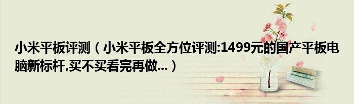 小米平板评测(小米平板全方位评测:1499元的国产平板电脑新标杆,买不买看完再做...