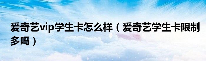 大家好,跳跳为你解答以上问题。爱奇艺vip学生卡怎么样,爱奇艺学生卡限制多吗这个问题很多人还不知道,现在让我们一起来看看吧!
