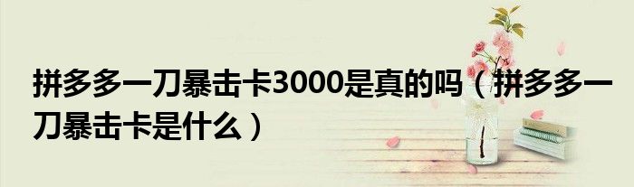 大家好,跳跳为你解答以上问题。拼多多一刀暴击卡3000是真的吗,拼多多一刀暴击卡是什么这个问题很多人还不知道,现在让我们一起来看看吧!