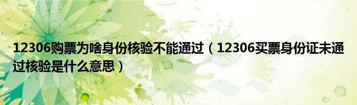 大家好,跳跳为你解答以上问题。12306购票为啥身份核验不能通过,12306买票身份证未通过核验是什么意思这个问题很多人还不知道,现在让我们一起来看看吧!
